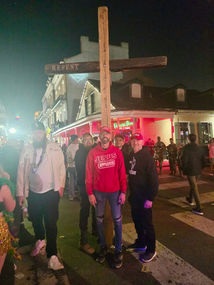 Carrying the Cross – We boldly walk down Bourbon Street with a large wooden cross, a powerful symbol of Christ’s sacrifice and love.